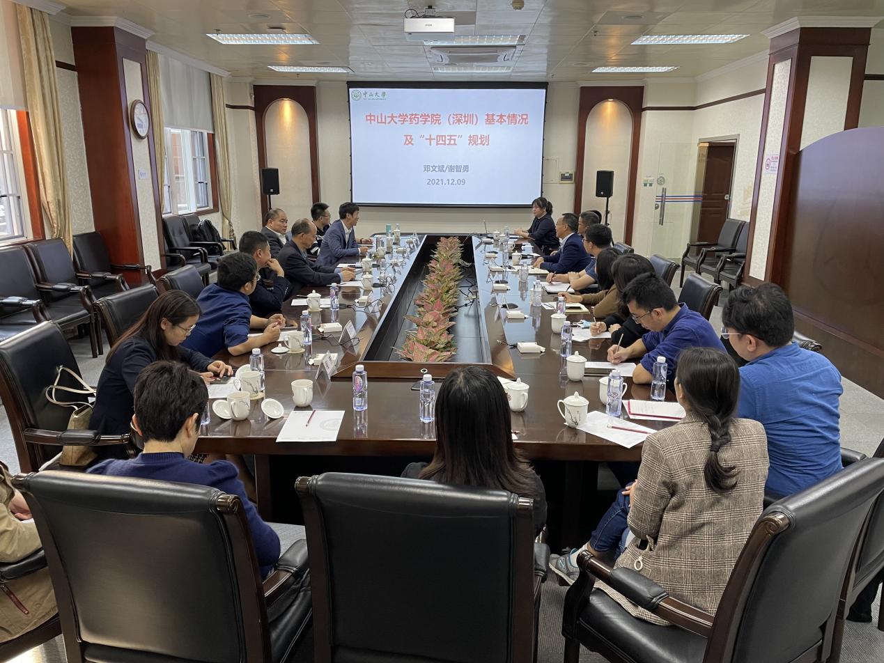 12月9日下午,中山大学药学院(深圳)院长邓文斌教授、杨德胜书记和副院长谢智勇教授及教师代表一行来亚洲国产精品无码AAA片调研。学院党总支书记、院长刘冬,副书记段杰鑫,副院长李永红、黄略略热情接待了来访一行。