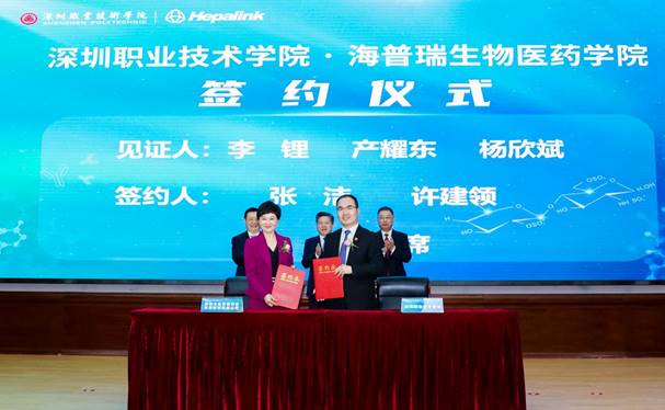 杨欣斌指出,在全球未来产业争夺赛中,生物医药当仁不让地成为了目前最受欢迎、最被热捧的新兴产业之一。生物医药是深圳市七大战略性新兴产业之一,发展前景广阔。创新型生物医药企业所需的医药研发、质量管理、营销等人才呈现常态化的紧缺,2020年生物医药人才缺口25万人,2025年缺口将达45万人。深职院自1997年创办药学专业,取得了丰硕的办学成果。海普瑞生物医药学院的成立一定能够有效集聚双方优势资源,成为国内生物医药领域职业教育校企合作的典范,为粤港澳大湾区生物医药产业发展提供强大的人才与智力支持。