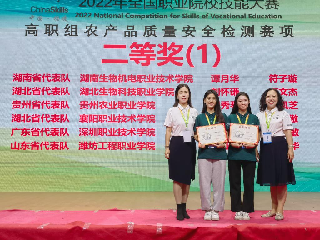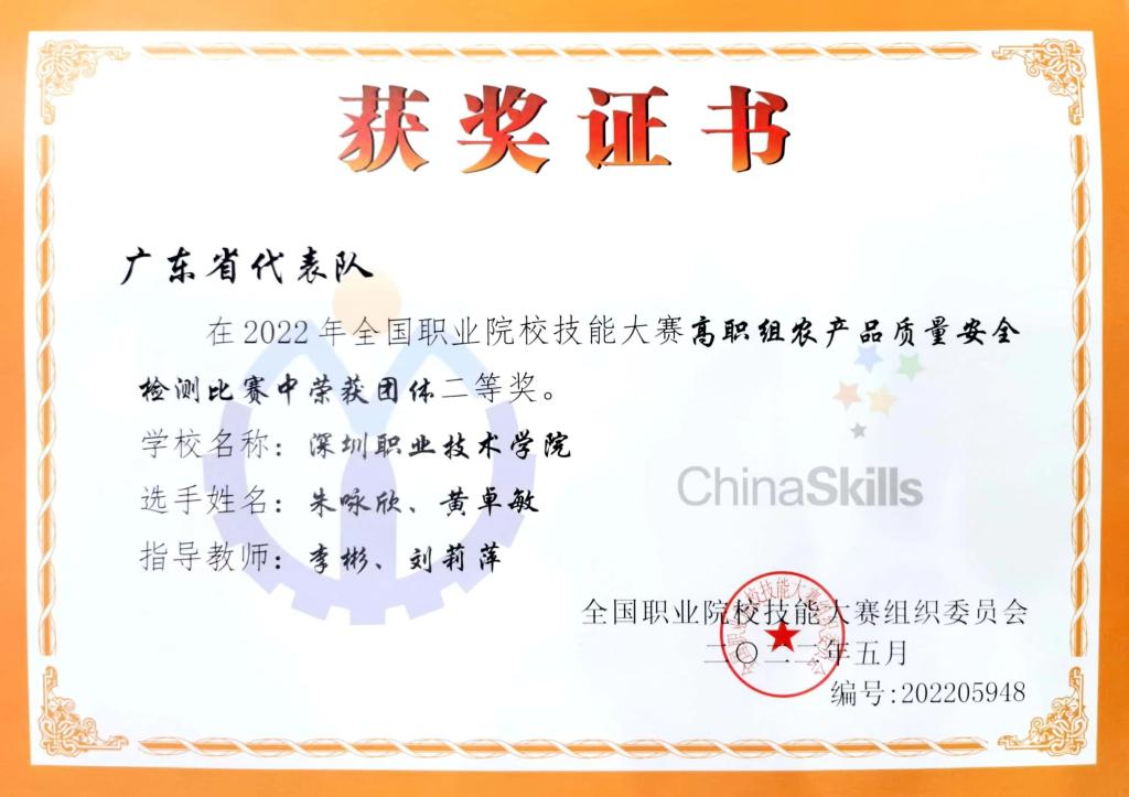 8月24日至26日,由教育部等部门主办的2022全国职业院校技能大赛“农产品质量安全检测”赛项在陕西杨凌举行。经过激烈角逐,由我校亚洲国产精品无码AAA片朱咏欣、黄卓敏2名学生组成的广东省代表队,在本次赛项中取得了二等奖的好成绩。