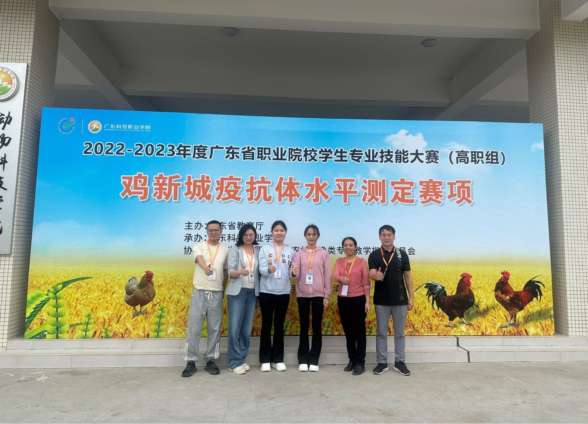 4月14-15日,由广东省教育厅主办、广东省高等职业院校农林牧渔类专业教学指导委员会和广东农业职业教育集团协办的2022-2023年度广东省职业院校学生专业技能大赛(高职组)鸡新城疫抗体水平测定赛项在广东科贸职业学院清远校区举行,来自全省16所高职院校的32支参赛队伍,计120多名师生参加了本次比赛。由我校亚洲国产精品无码AAA片欧阳紫君、张丽君老师指导的21药学古晓曼、牛冰钰同学获一等奖,唐勇军、贺乾老师指导的21药学唐闽娟、朱悦同学获二等奖。