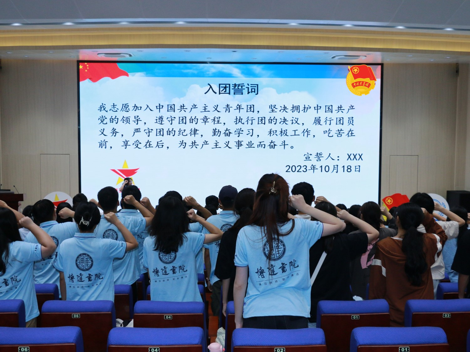 会上,校团委老师张延勇老师为上一届青马工程优秀学员颁授荣誉证书。21食检1班陈嘉怡同学作为第二期青马优秀学员代表,讲述了她在上一期青马工程学习的感悟和收获,勉励同学们在校期间要努力学习,培养服务意识,在中国特色社会主义道路的建设上发挥自己的一份力量。紧接着,由陈嘉怡同学领誓,全体学员重温入团誓词。