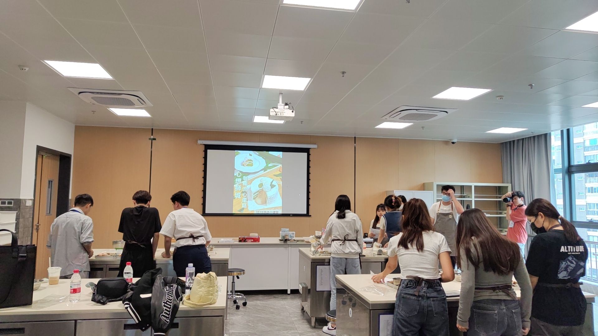 12月20日,博达书院烘焙协会于格物园E座食品工艺实训室开展“心想狮城”咖椰流心蛋糕烘焙体验重点活动,本次活动面向无烘焙基础的社团成员,以及新加坡工艺教育局访学的5名学子。
