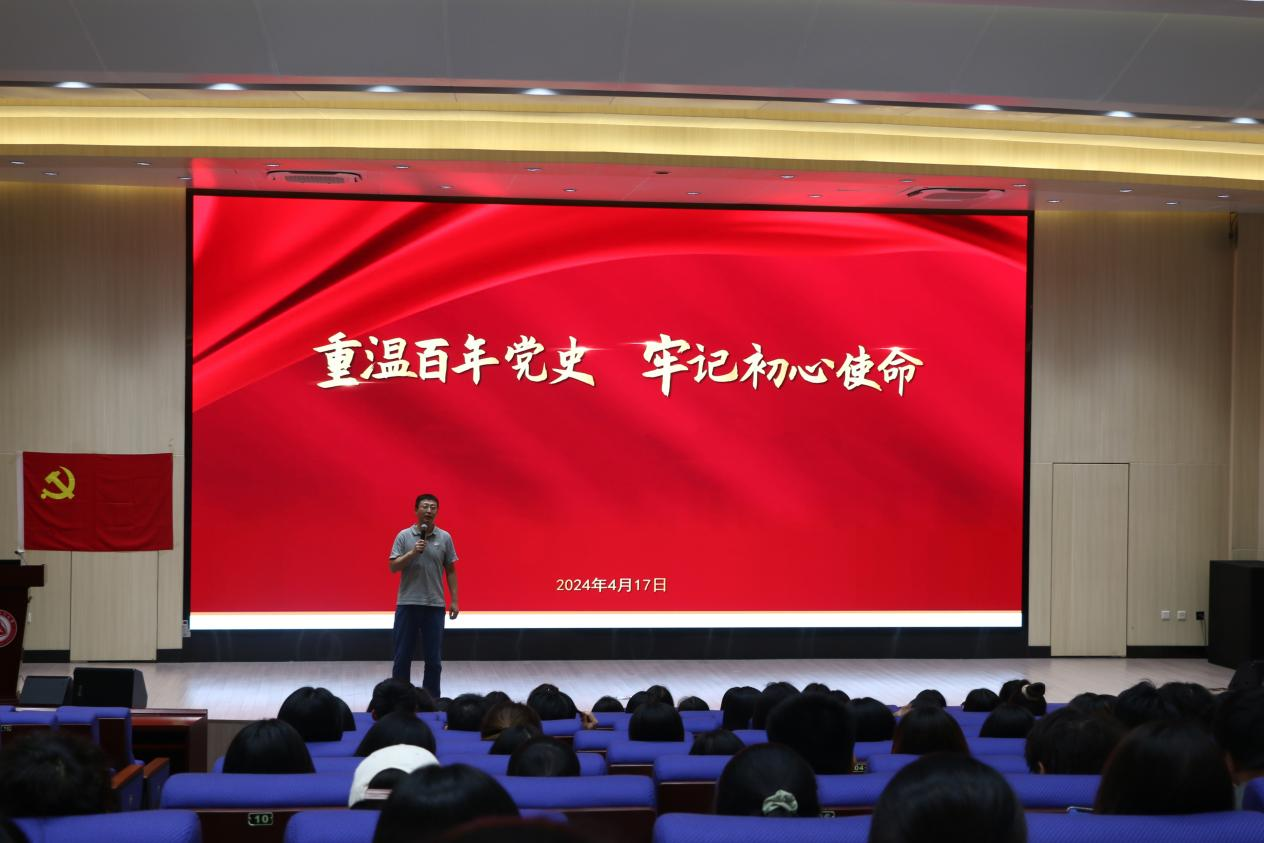 4月17日下午,亚洲国产精品无码AAA片博达书院学生党支部在官龙山校区报告厅举办第六期入党积极分子培训班开班第一课,食药学院副书记段杰鑫以“重温百年党史,牢记初心使命”为主题进行授课。