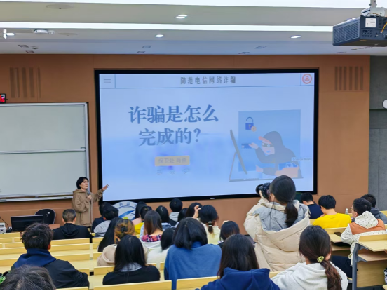 大会开始,首先对上一学期在反诈工作中表现优异的班级及个人进行表彰,鼓励他们继续做好反诈工作宣传,紧接着进行了新一届的反诈专员聘任,最后肖燕老师从“诈骗集团内部分工与协作”展开跟同学们分享了校园生活中可能遇到的诈骗类型以及应对的方法,通过幽默生动的语言讲解了常见的诈骗手段和诈骗话术,并给同学们两点行动建议:“建立怀疑优先思维”和“主动拥抱反诈知识”。同学们纷纷表示此次讲座进一步提高了识诈骗、防诈骗能力,时刻牢记“擦亮双眼,谨防电信诈骗”。(食药学院 杨其要)