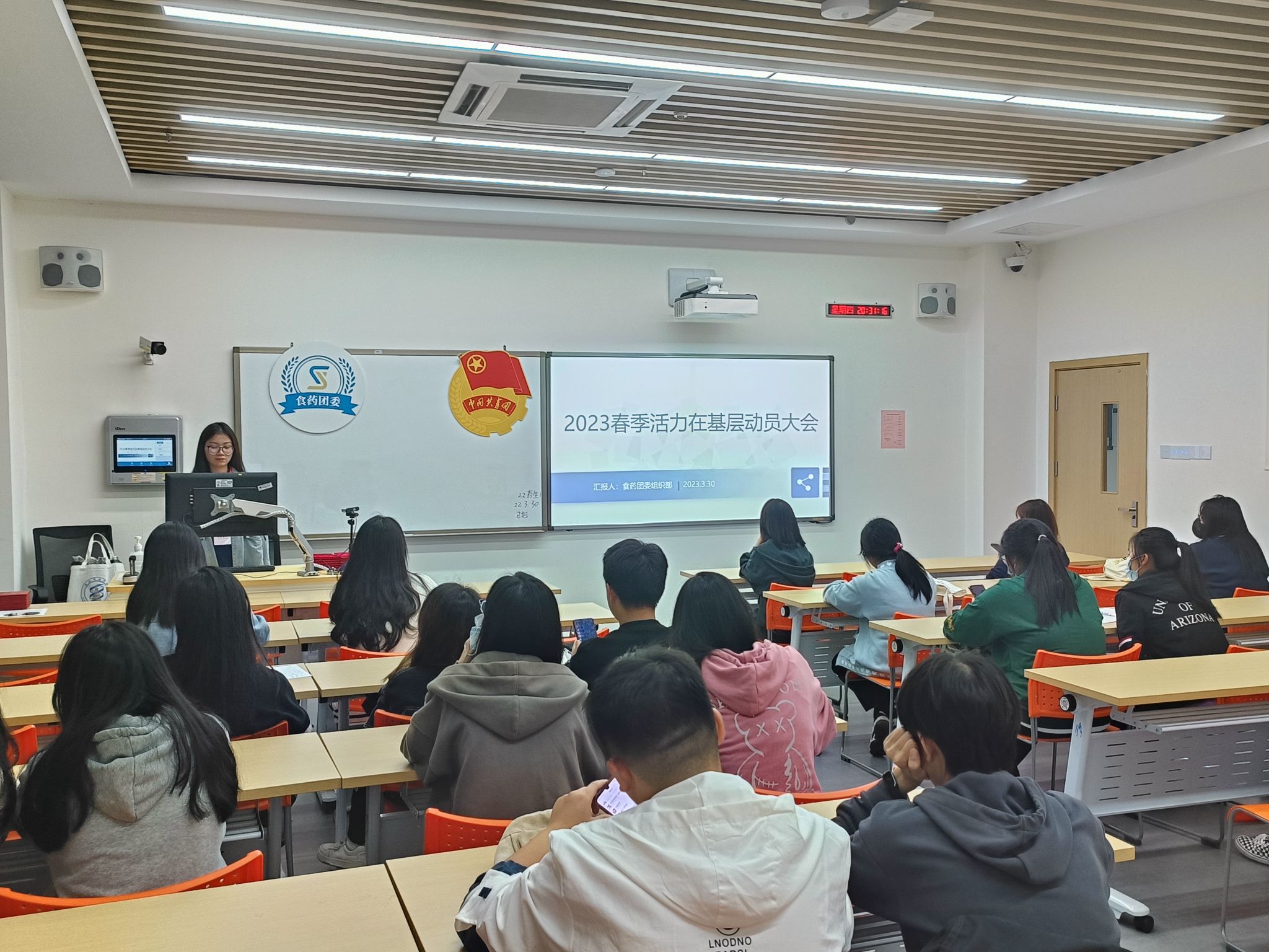 4月12日,为深入贯彻习近平总书记关于青年工作的重要思想,引领团员青年深刻学习宣传贯彻党的二十大,食药团委组织开展了2023年春季活力在基层动员大会。全体班级团支书到会。