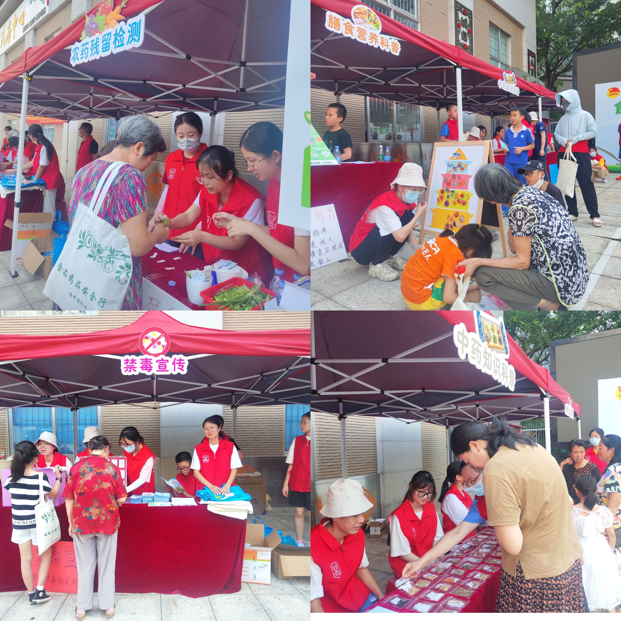 此次活动发扬“奉献、友爱、互助、进步”的志愿者精神,紧密结合大学生专业知识,经精心筹备,顺利开展了以瓜果蔬菜农药残检测、膳食营养科普、中药知识科普、禁毒宣传、眼镜义务清洗、垃圾分类为主的系列活动。活动现场,大学生志愿者们通过设置展板、派发食品药品安全相关知识的养生手册、禁毒宣传手册等方式向居民宣传食品药品安全知识。现场还设置了精彩的有奖问答互动环节、中药名猜谜、垃圾分类飞行棋、投壶等趣味游戏,各活动组的志愿者们在为居民讲解服务内容和游戏规则的同时,向他们普及食品药品安全的相关知识,吸引了社区居民的热情参与。同学们的表现得到了福中福社区团委书记宋星星的高度认可,她表示高校与社区联建是共赢的举措,食品药品安全是公众健康生活的根本保证,欢迎同学们继续将专业知识运用到社区的其他实践活动中去,在社区实践中检验学习成果、磨砺品格。