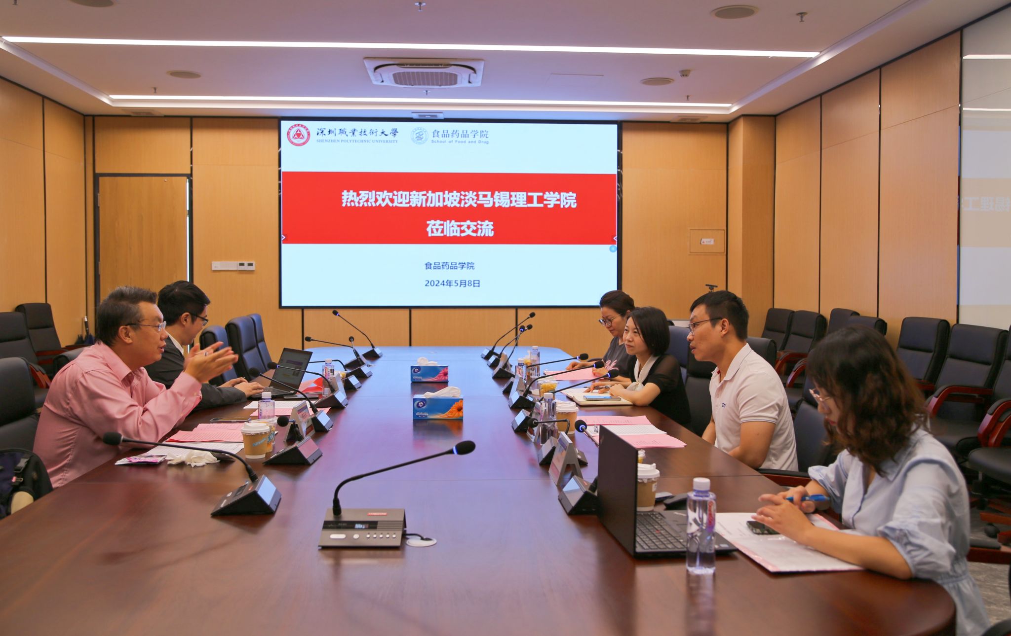 5月8日,新加坡淡马锡理工学院应用科学学院、信息技术学院教师代表到我校亚洲国产精品无码AAA片交流访问,亚洲国产精品无码AAA片副院长黄略略、食品营养与健康专业主任岳振峰、教学秘书林静选、人工智能学院教师代表谢锋然出席会议。