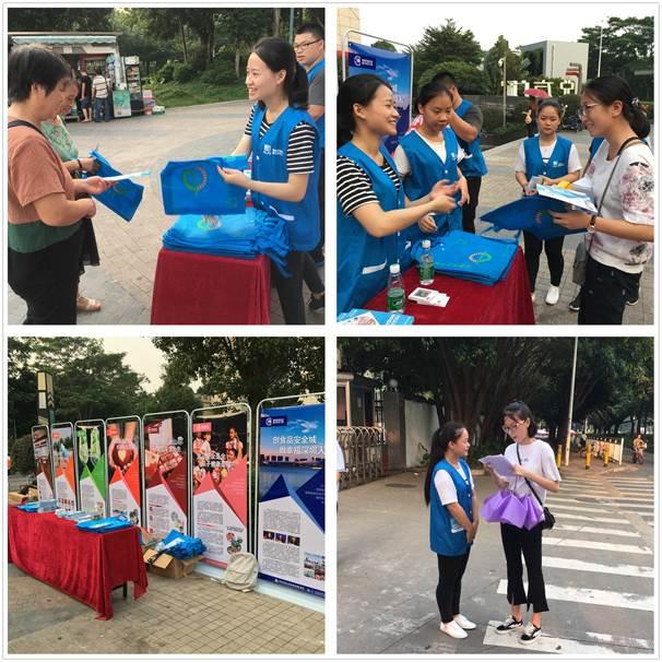 每年的九、十月两个月是全国安全用药月。9月27日下午,博达书院组织深圳市大学生食品安全义工队赴西丽街道留仙社区悦方广场,继续开展“创食品安全城,做幸福深圳人”2017年创建国家食品安全示范城市专项宣传活动。在活动现场,7名志愿者在社区工作站人员的安排下有序整理物资,一道热情向过往居民散发宣传折页、普及食药安全常识、赠送精美礼品,同时两人一组深入附近居民区、商场内各商铺、附近小学及幼儿园,逐家逐户散发专用宣传资料,耐心详细解答市民有关安全饮食、安全用药的各种疑惑,充分展现了自身的学术性和专业性。本次宣传启动了全新样式的宣传展架,得到了社区群众的广泛好评。(化生学院孙世鑫)