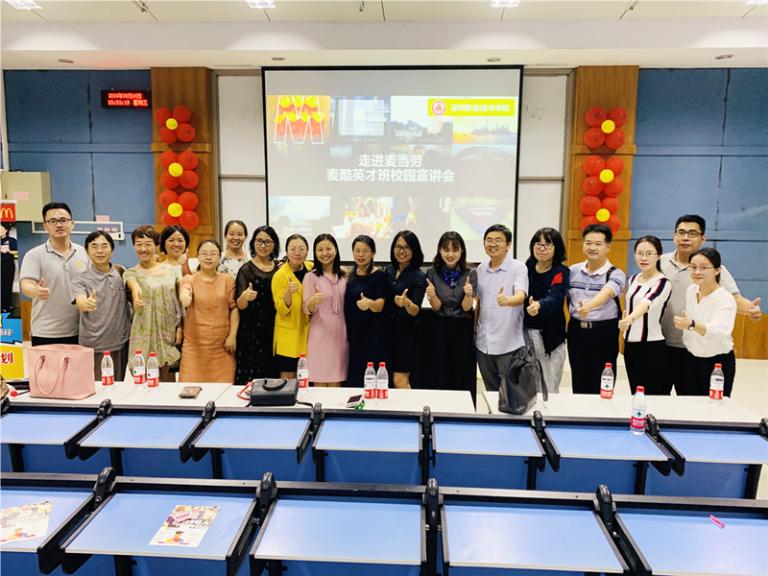 9月18日,深圳金拱门食品有限公司“麦酷英才班”宣讲会在我校留仙洞校区德业楼举行。公司深莞惠地区麦当劳营运总监周丽影、高级人力资源经理郭淮、高级营运经理蔡丽丽、人力资源经理彭嘉琳,化生学院食品专业群主任黄略略,食品专业群教师和2019级食品生物技术专业、食品营养与检测专业学生参加了校园宣讲会。